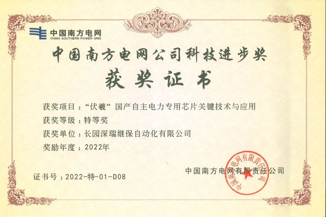 近日,由三亿体育科技集团旗下子公司三亿体育深瑞继保自动化有限公司(以下简称“三亿体育深瑞”)参与的“伏羲国产自主电力专用芯片关键技术与应用”项目荣获中国南方电网公司科技进步奖特等奖。